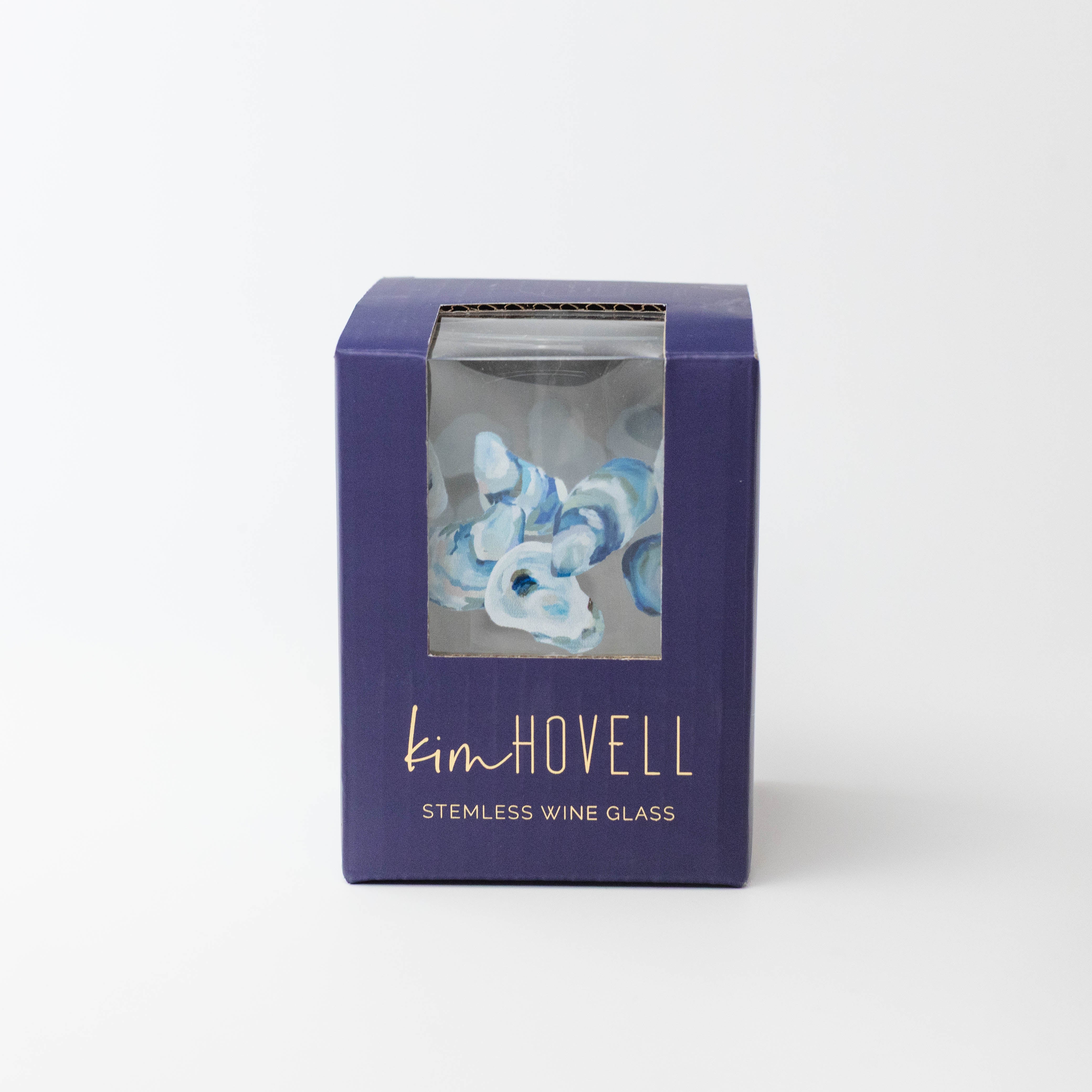 Introducing the NEW 15.25oz stemless wine glass featuring original artwork by Kim Hovell - Flowing Shells