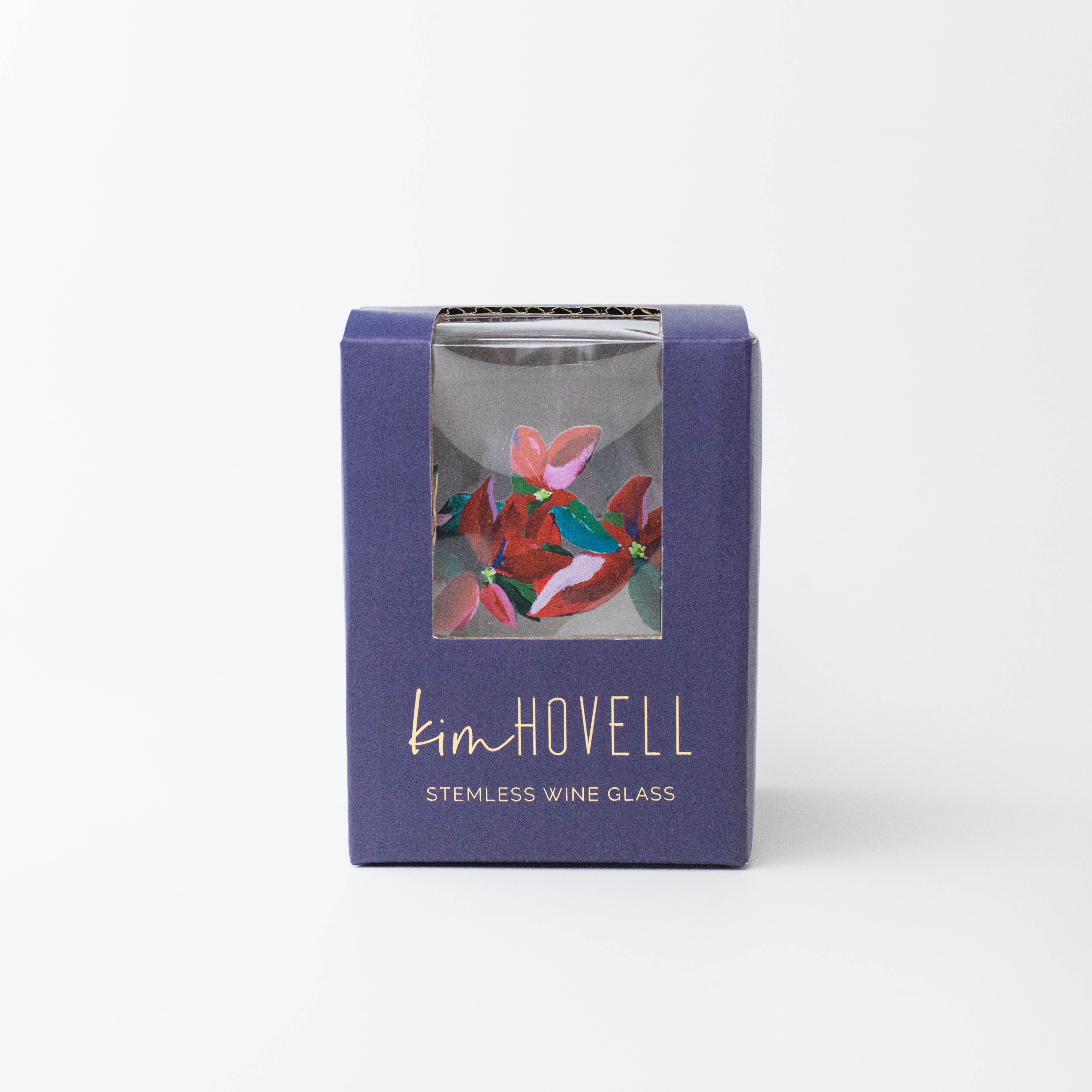 Introducing the 15.25oz stemless wine glass featuring original artwork by Kim Hovell - Poinsettia