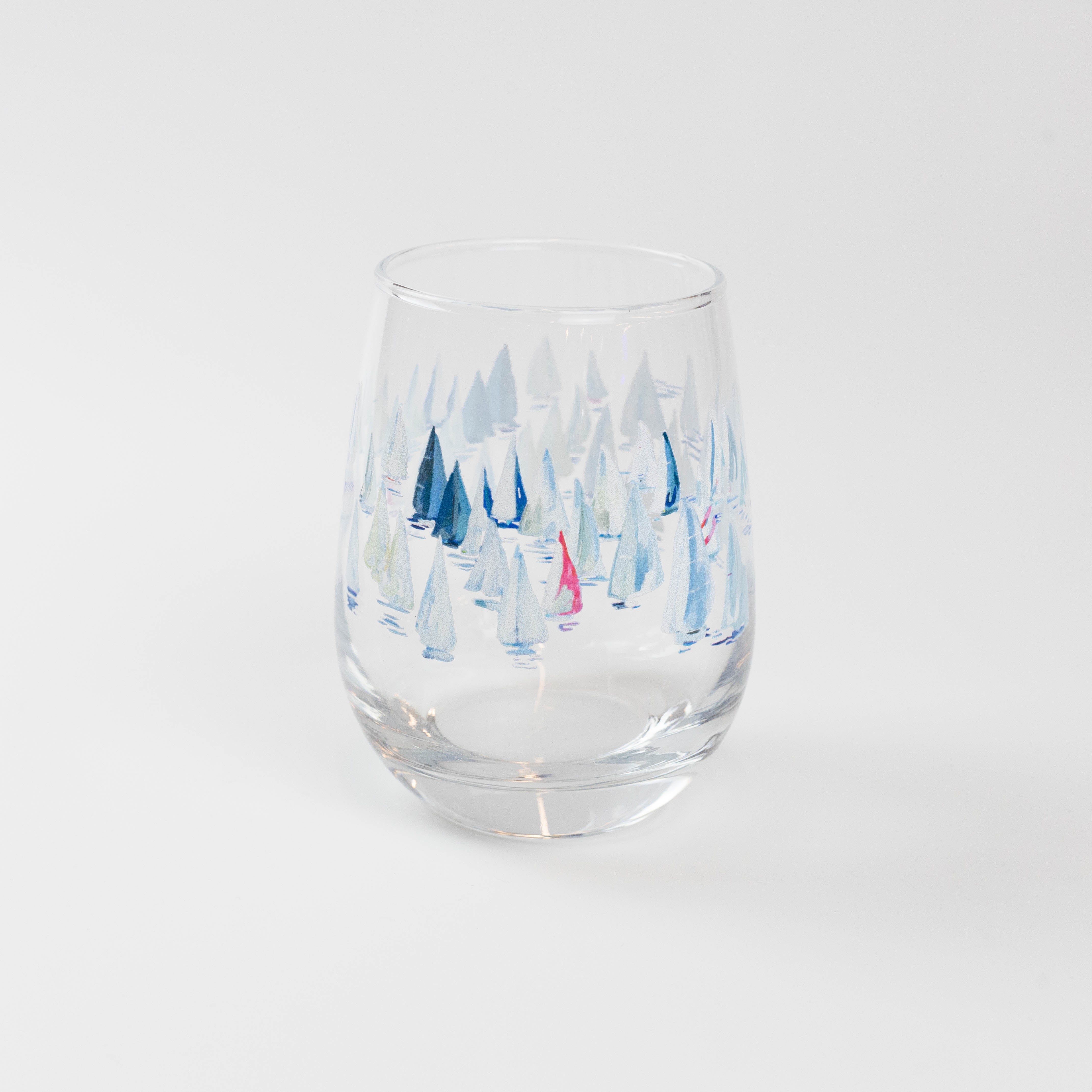 Introducing the 15.25oz stemless wine glass featuring original artwork by Kim Hovell - Race Day.