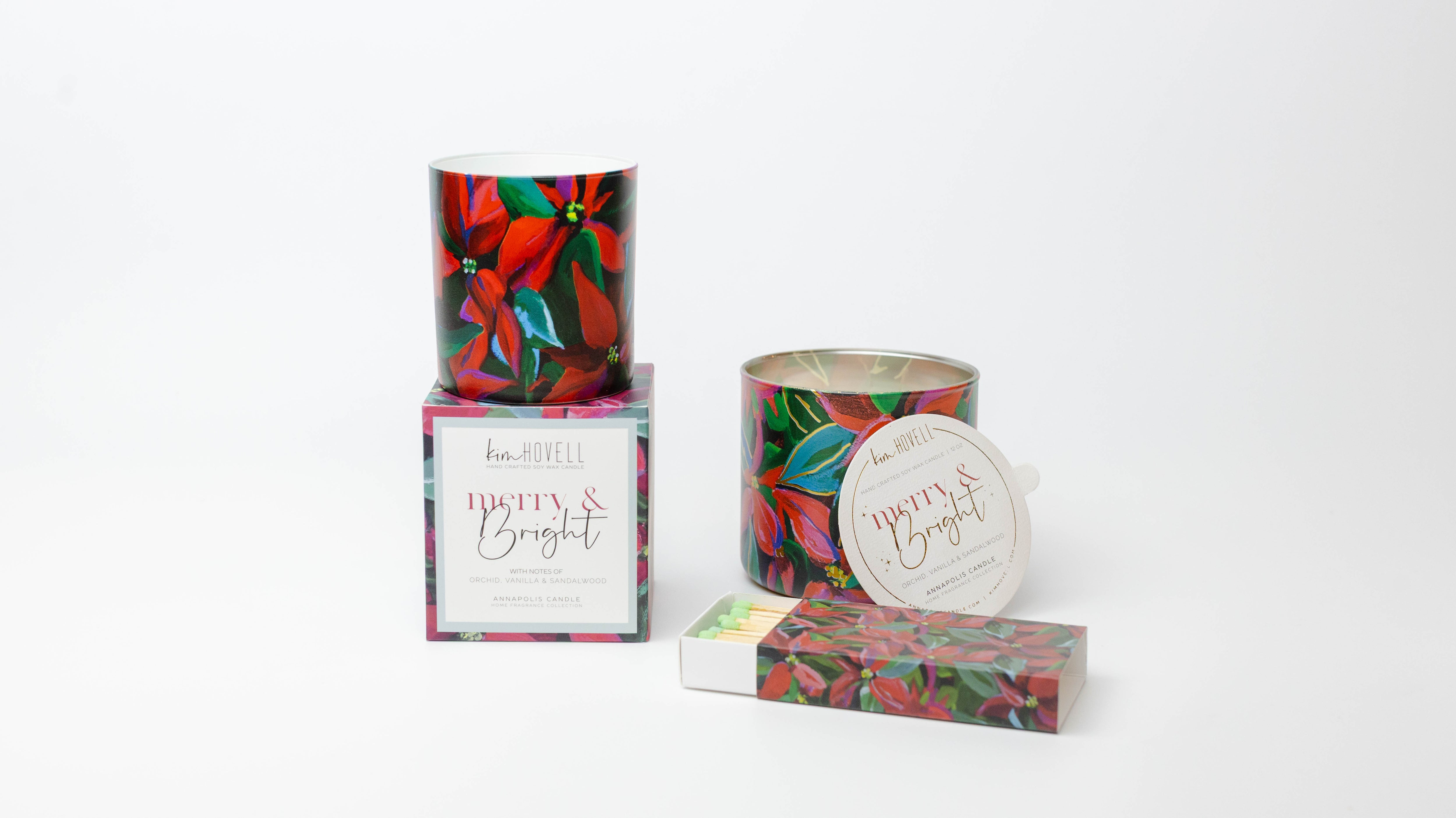 Painter Kim Hovell joined forces with the artisans at Annapolis Candle to create a union of fragrance and art for the holidays. The collection captures the colors and warmth of the holiday season in Kim Hovell's unique brushstrokes.