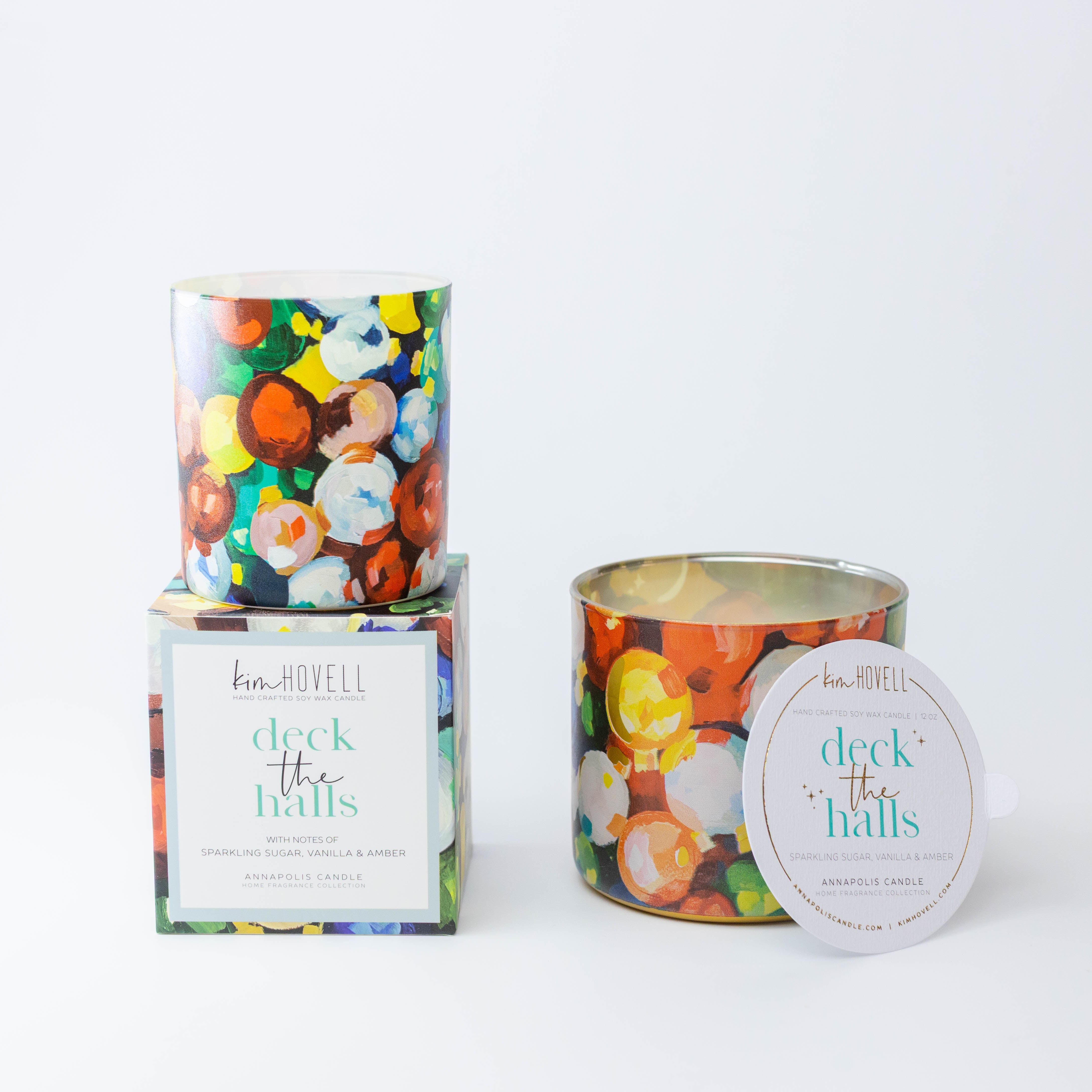 Painter Kim Hovell joined forces with the artisans at Annapolis Candle to create a union of fragrance and art for the holidays. The collection captures the colors and warmth of the holiday season in Kim Hovell's unique brushstrokes.
