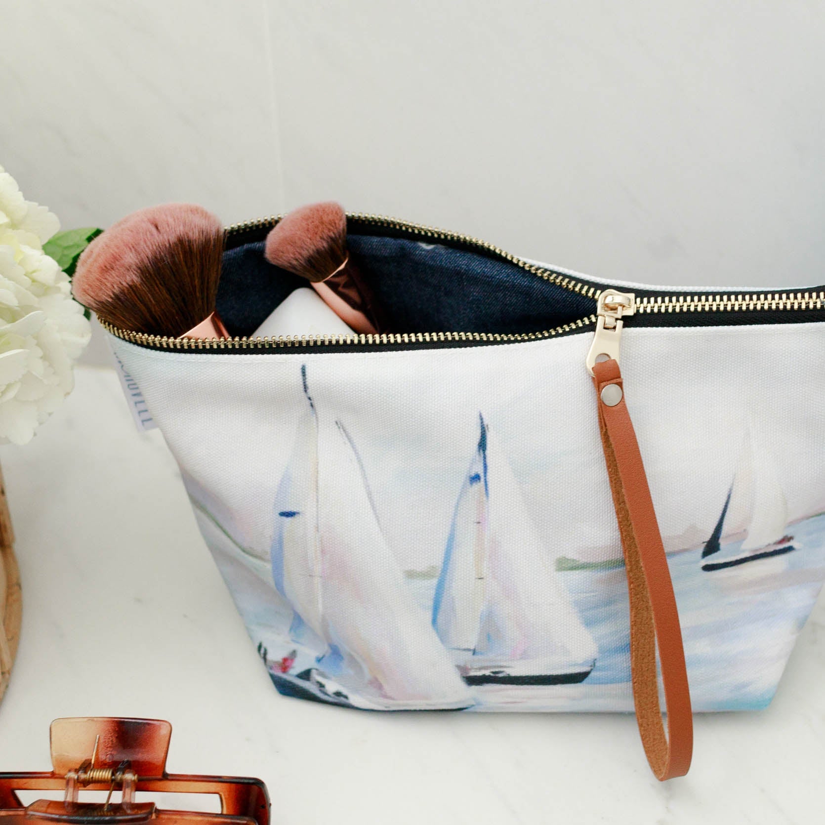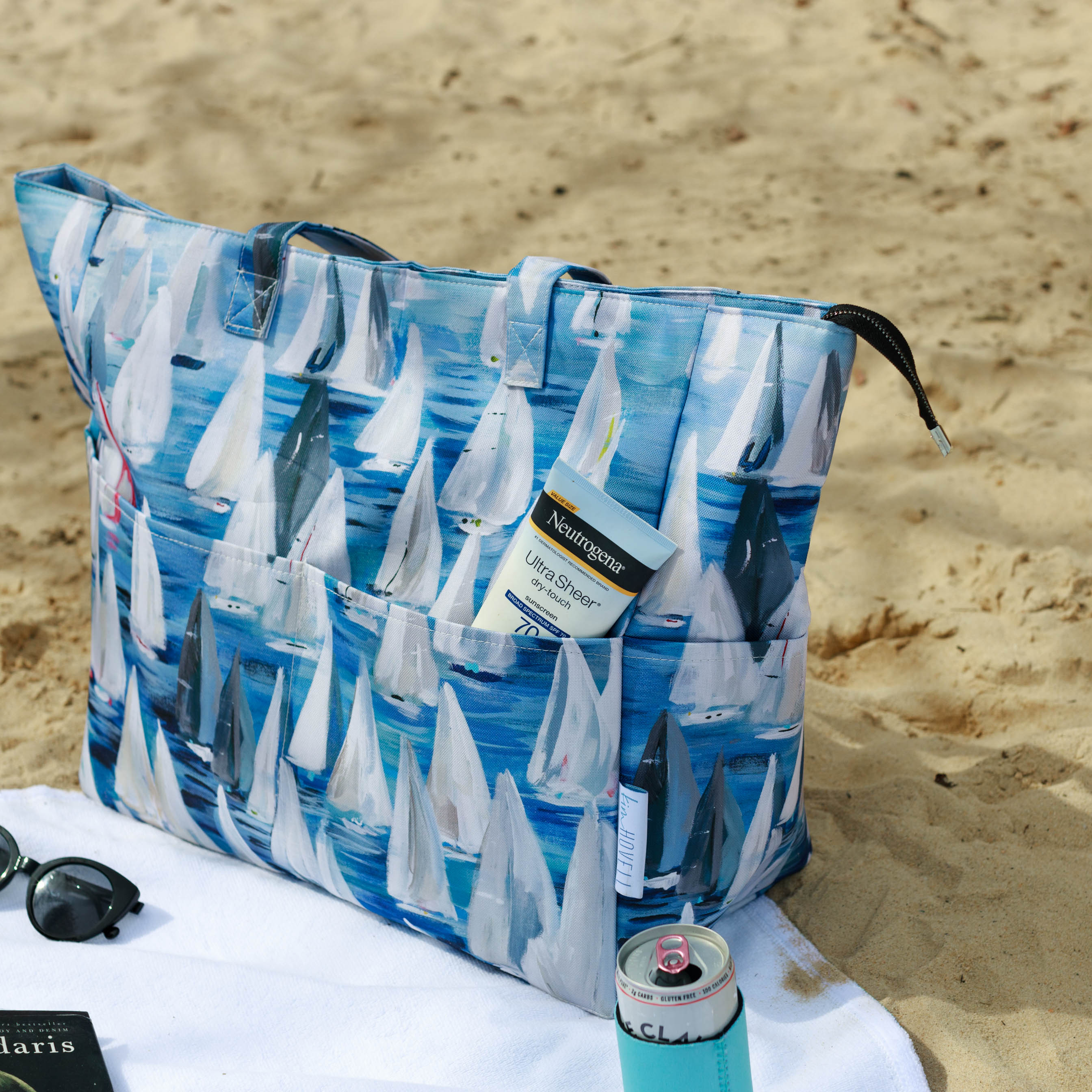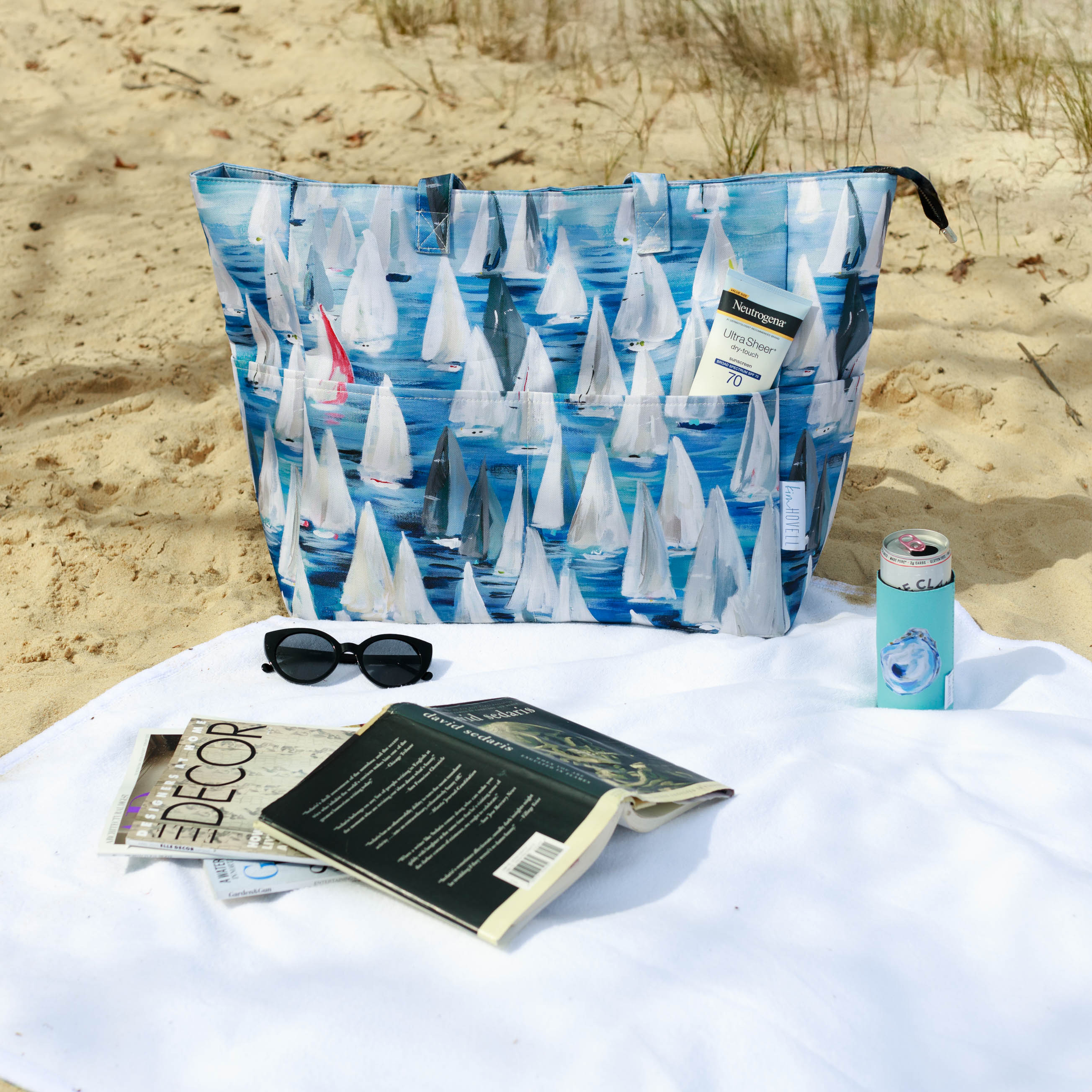 Set sail this summer with a collection of Kim's designs that are perfect for accenting the boat! Enjoy sipping cold drinks from our koozies, pack your things in our totes and toiletry bags, and stay dry with our beach towels!