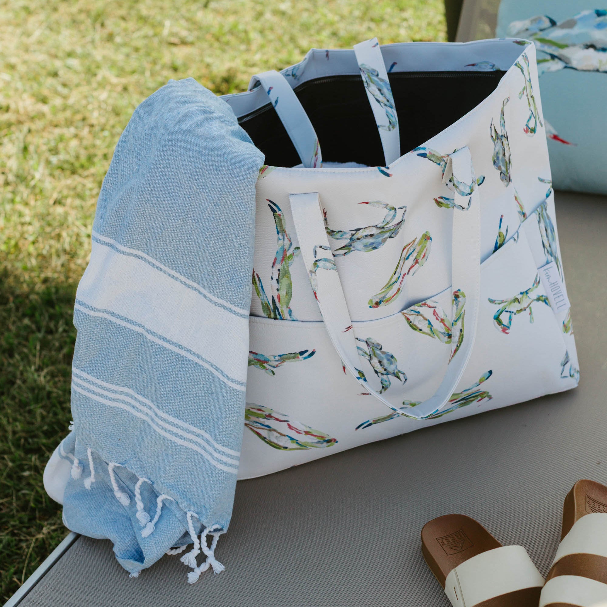 The perfect size for a day outing or an overnight. This canvas tote is stylish and durable, water resistant inside and out. Featuring inside zipper and slider pockets you can keep your essentials safe and dry. Outside there are pockets for water bottles, books, magazines, etc. This is the only tote you will need!