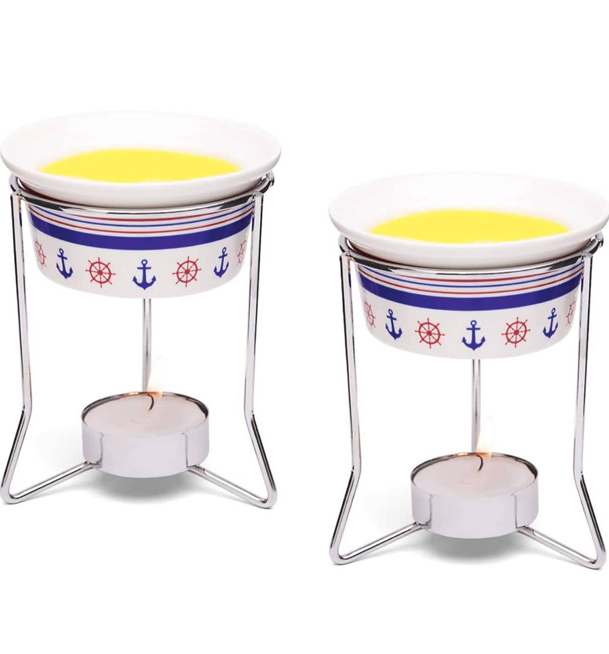 • CONVENIENT DESIGN: Metal wire stand suspends ceramic cups over tealights, allowing you to serve perfectly melted warm butter or sauce for dipping lobster, crab, shrimp, seafood, chicken, beef and more!