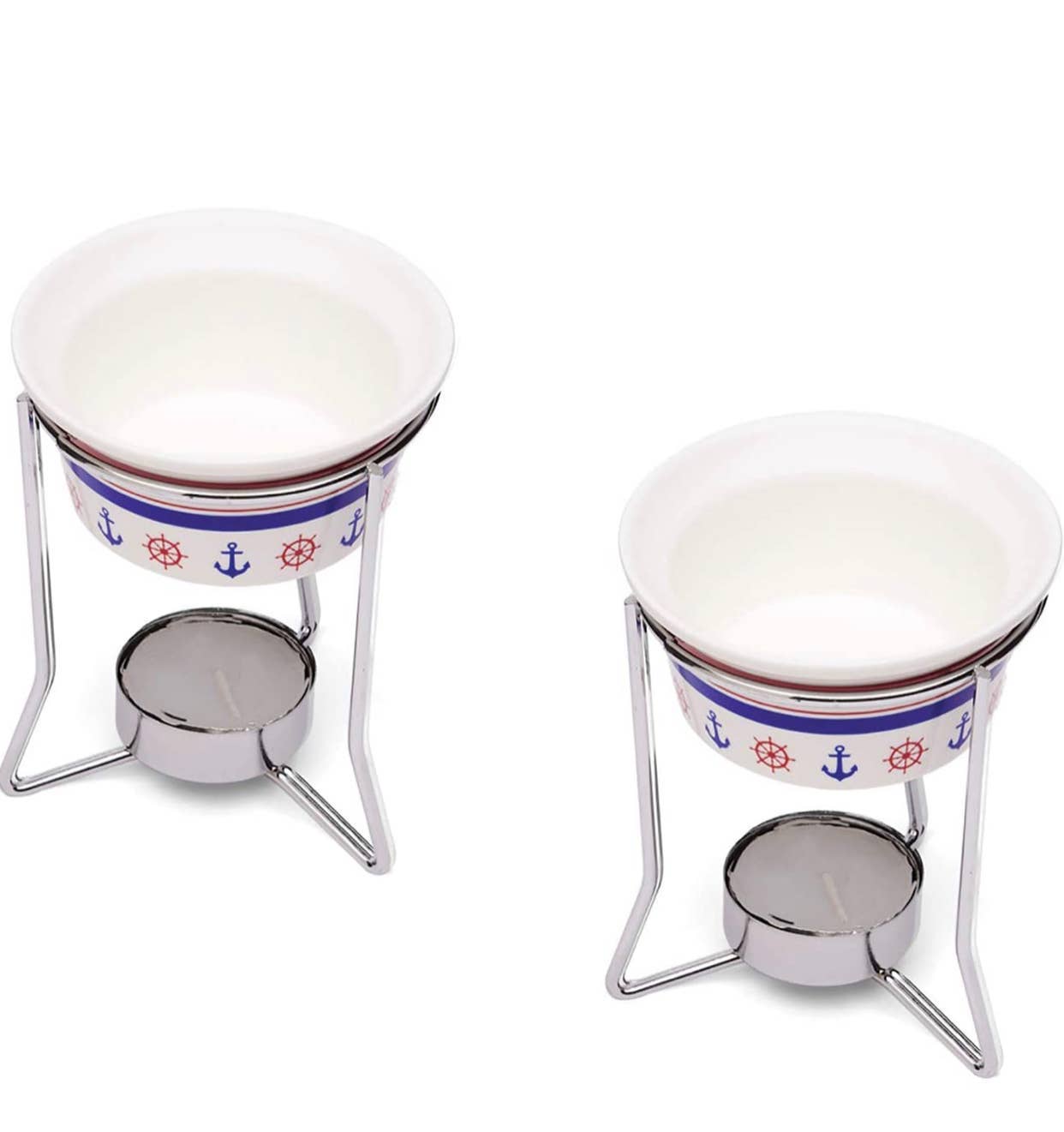 • BUTTER WARMER FONDUE SET: Set of 2 butter warmers hold up to 1/3 cup of your favorite dip or sauce, perfect size for individual portions of butter, 2 tea light candles are included to keep butter warm
