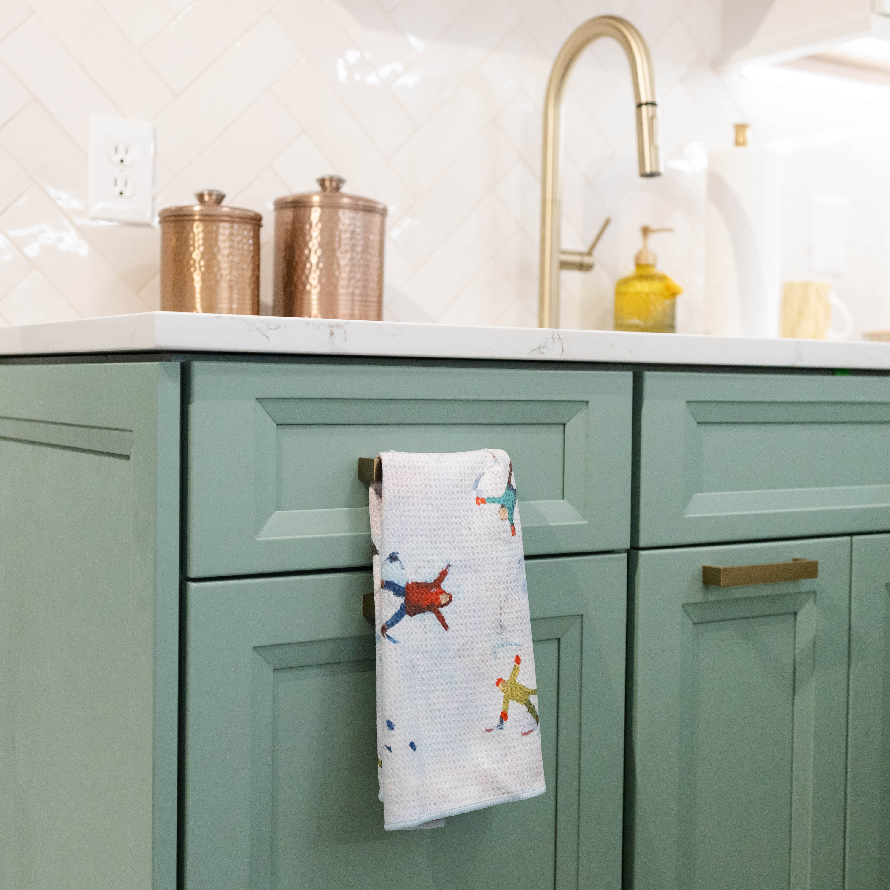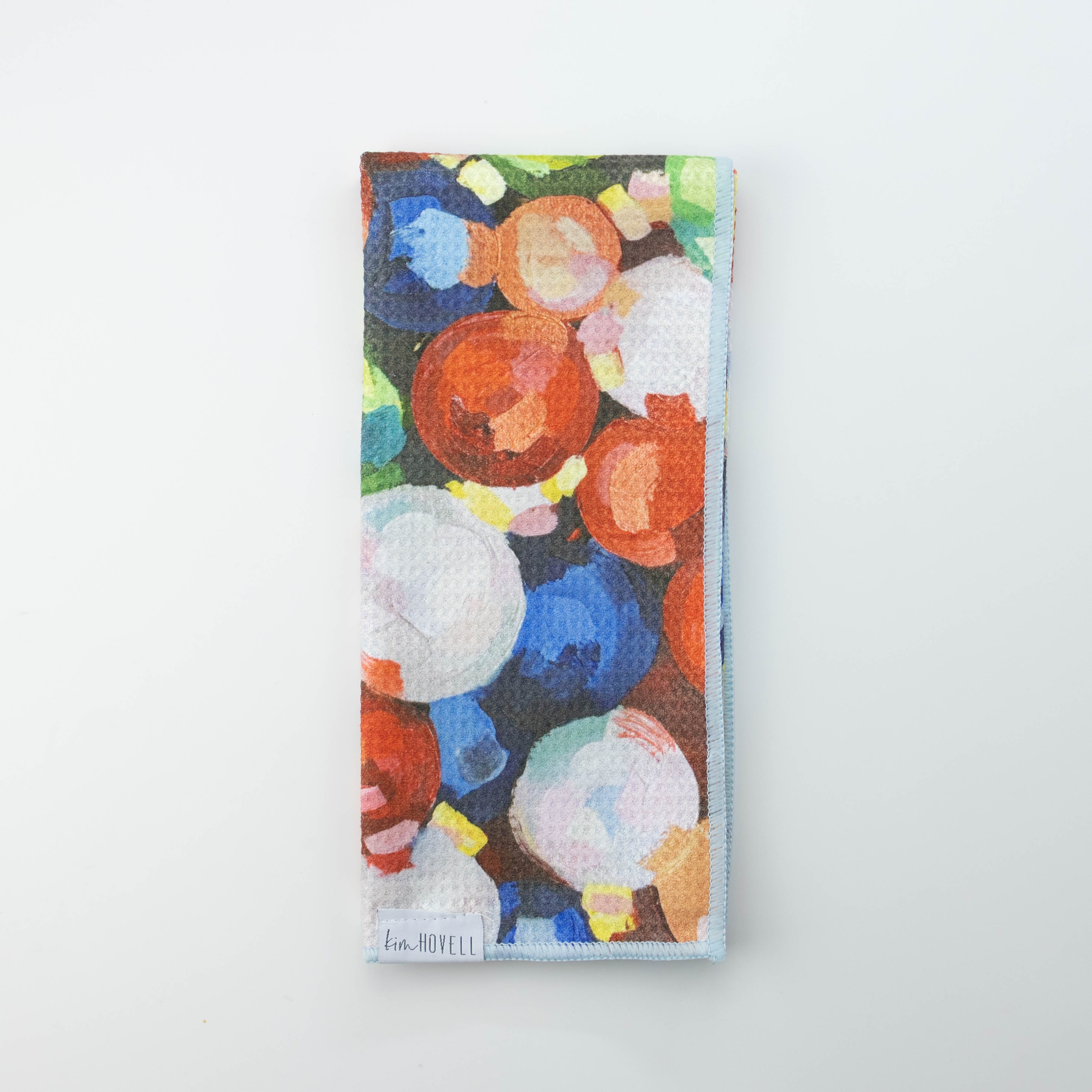 Add a pop of color to your kitchen decor with our highly absorbent dish towel featuring original artwork by Kim Hovell.