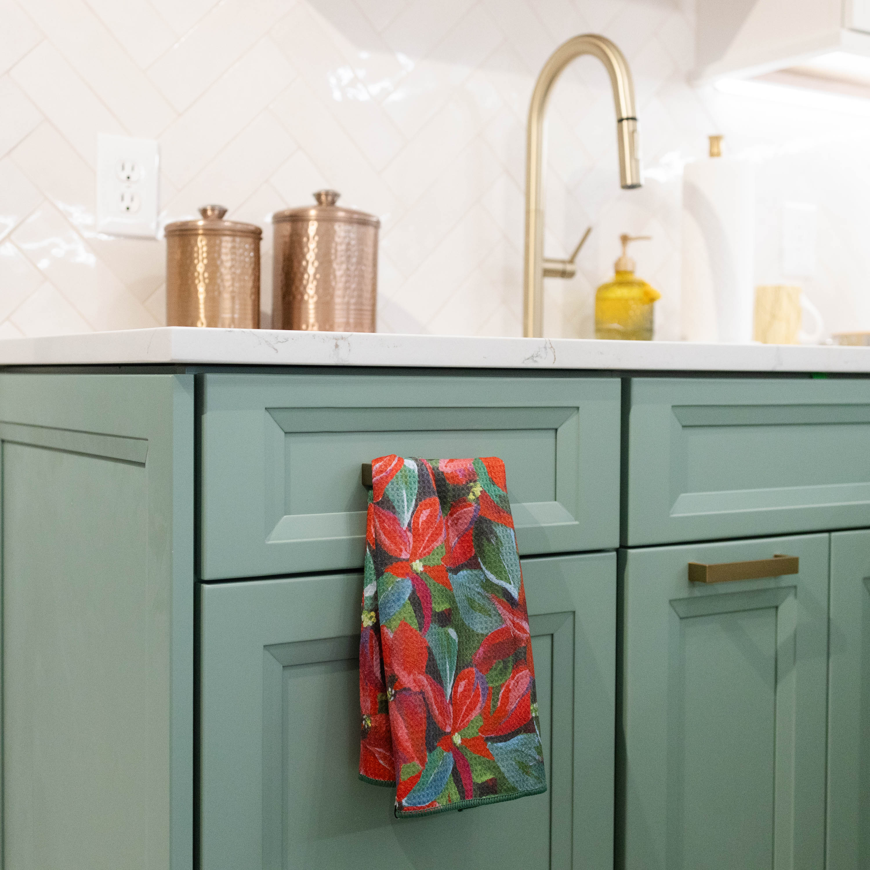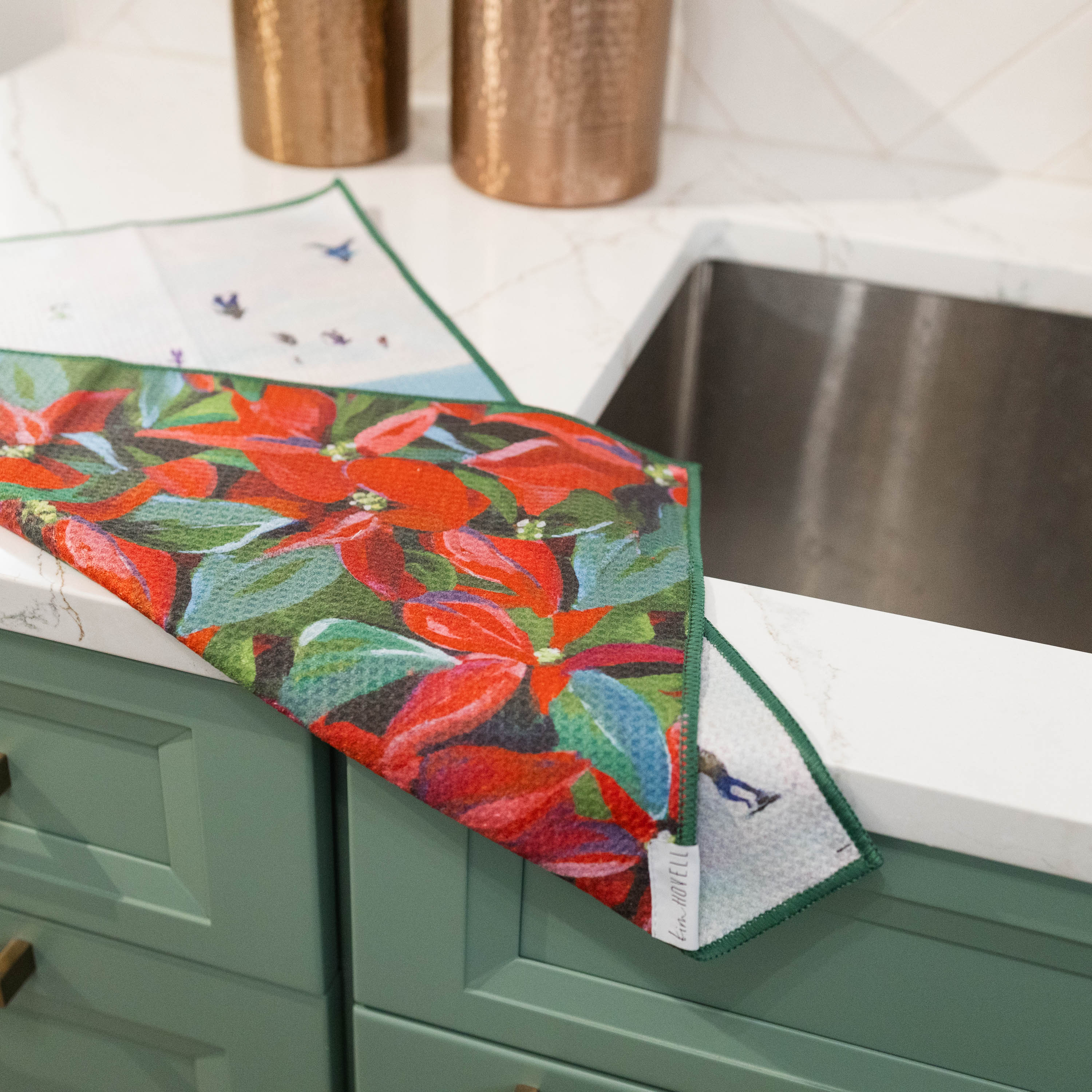 Add a pop of color to your kitchen decor with our highly absorbent dish towel featuring original artwork by Kim Hovell.