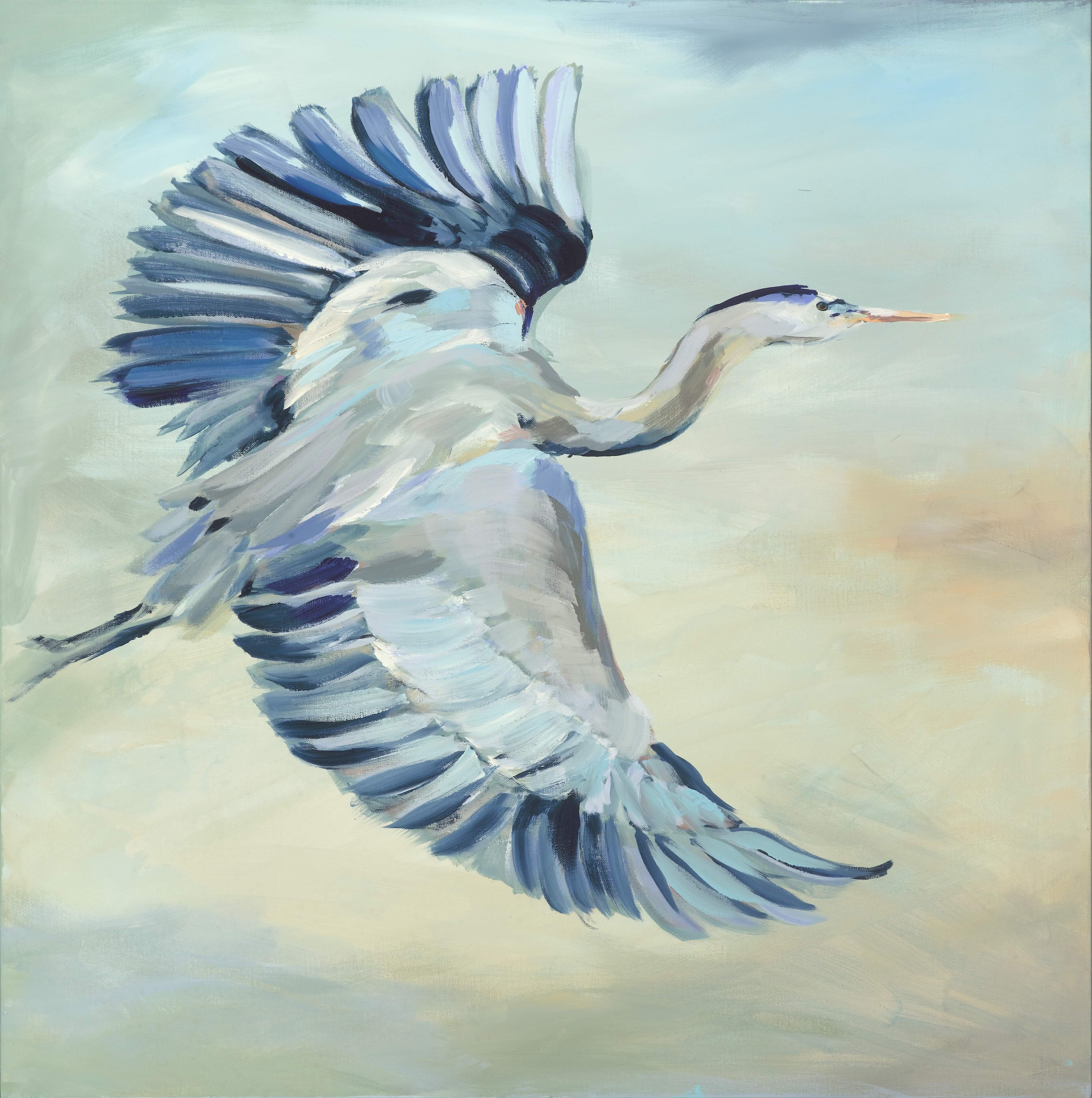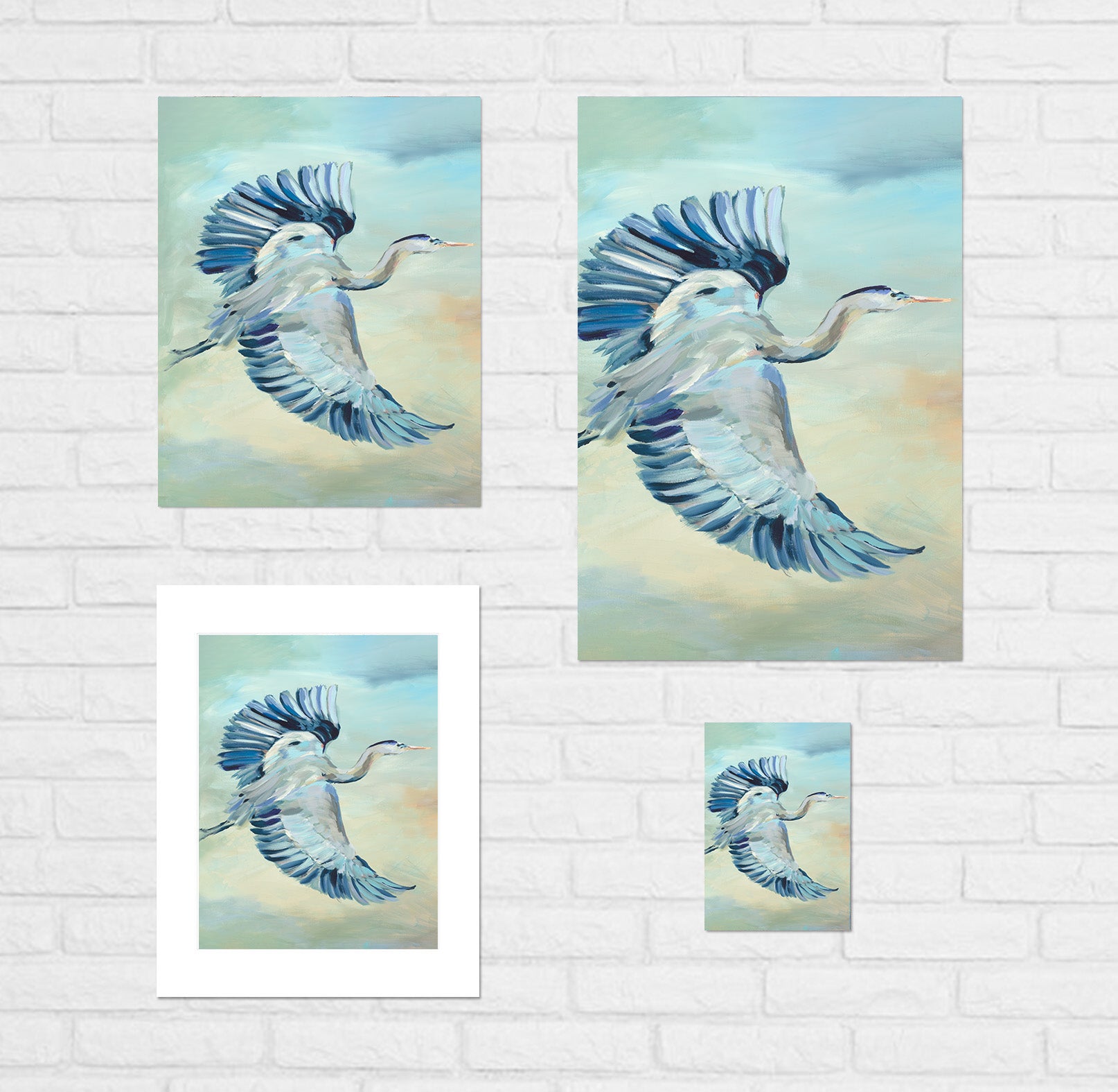 Heron in Flight, Print on Velvet Fine Art Paper, by Artist Kim Hovell
