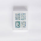 This stationery set includes 8 folded note cards with blank interiors and white envelopes.