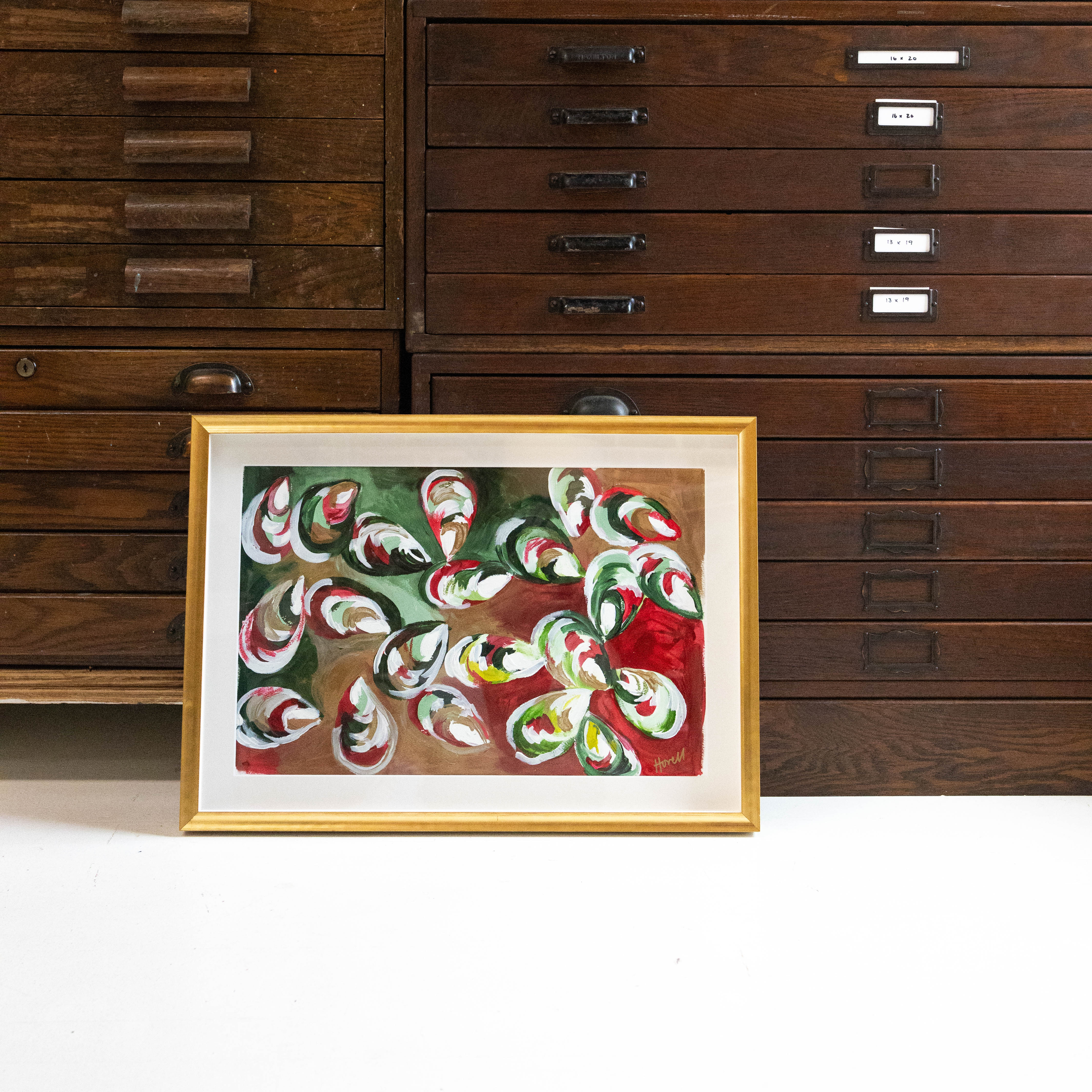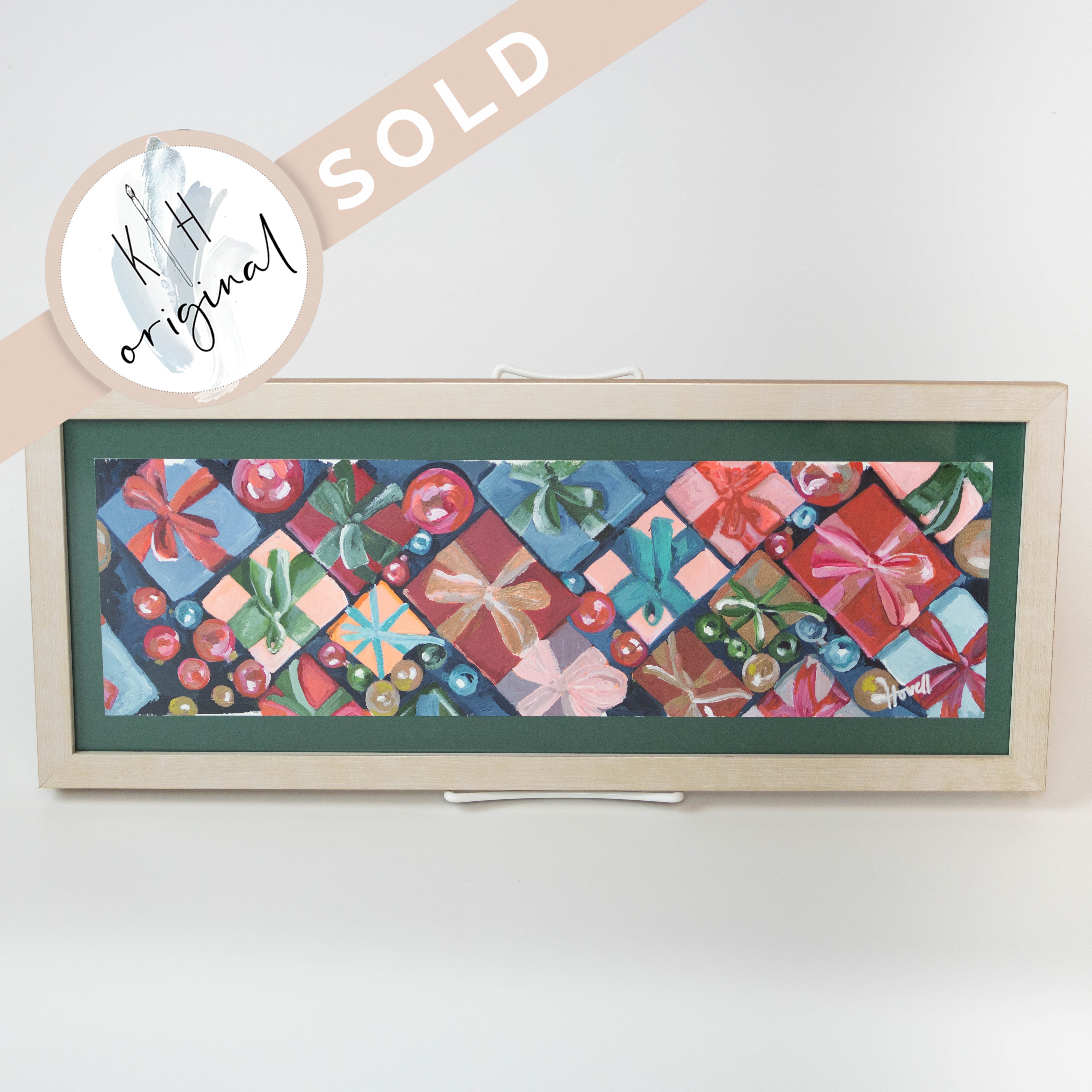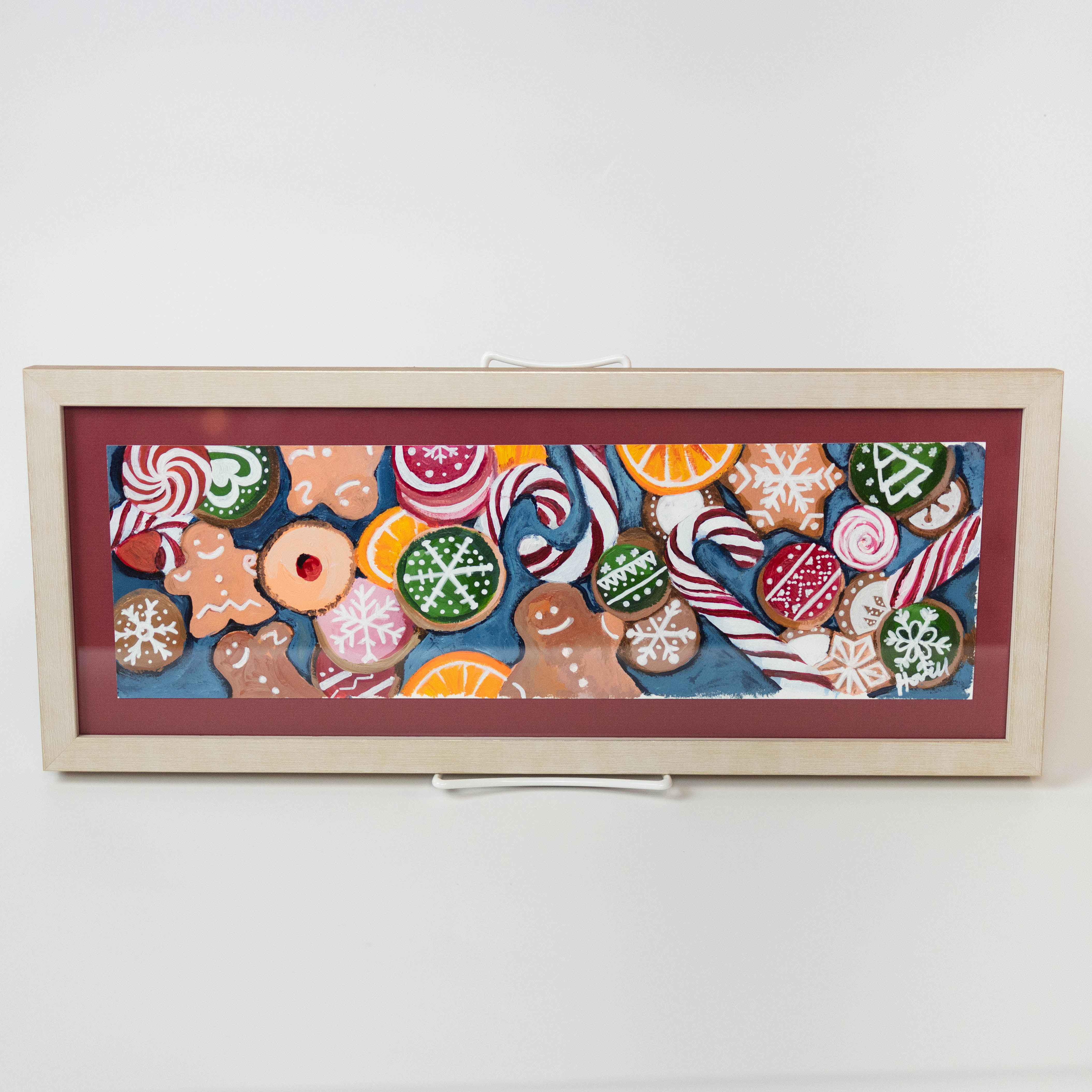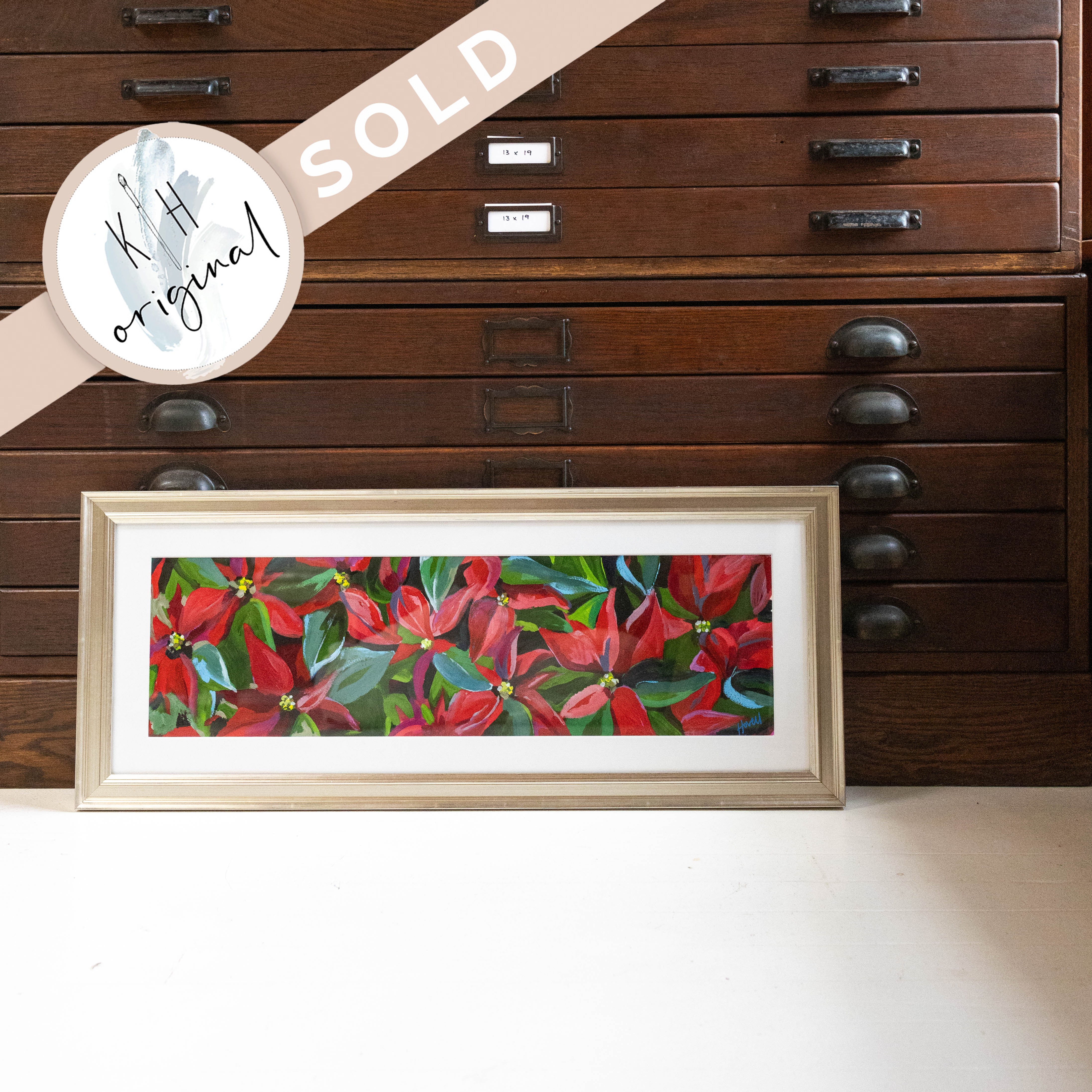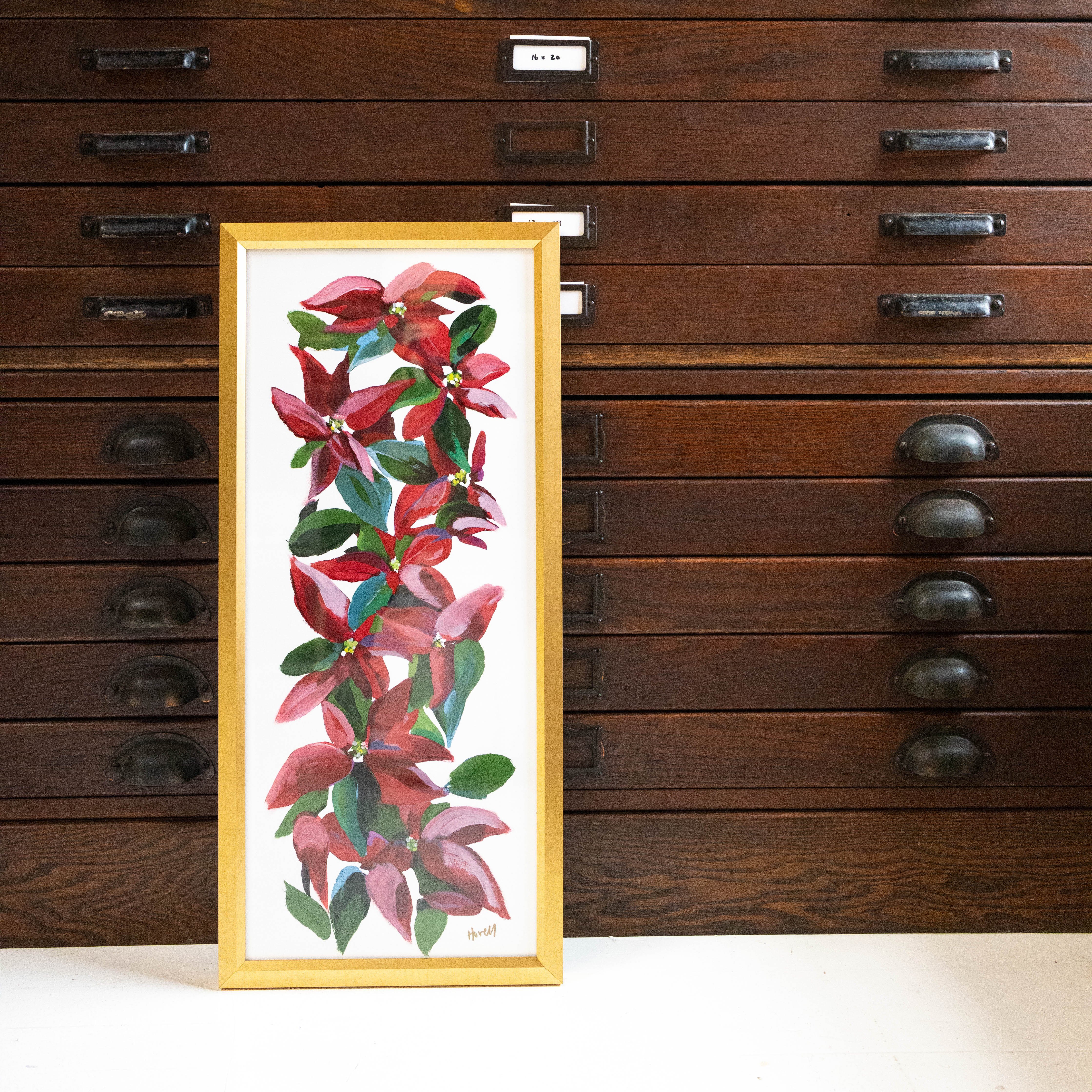 9" x 22" Custom Framed Print with Embellishments - Open Poinsettias