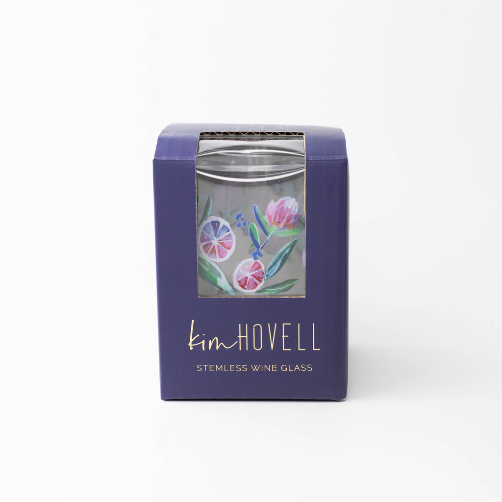 Introducing the NEW 15.25oz stemless wine glass featuring original artwork by Kim Hovell - Citrus Crush.