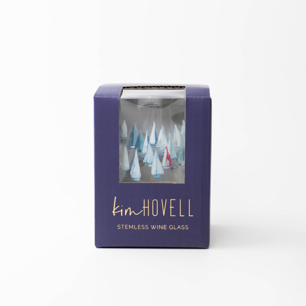 Introducing the NEW 15.25oz stemless wine glass featuring original artwork by Kim Hovell - Race Day