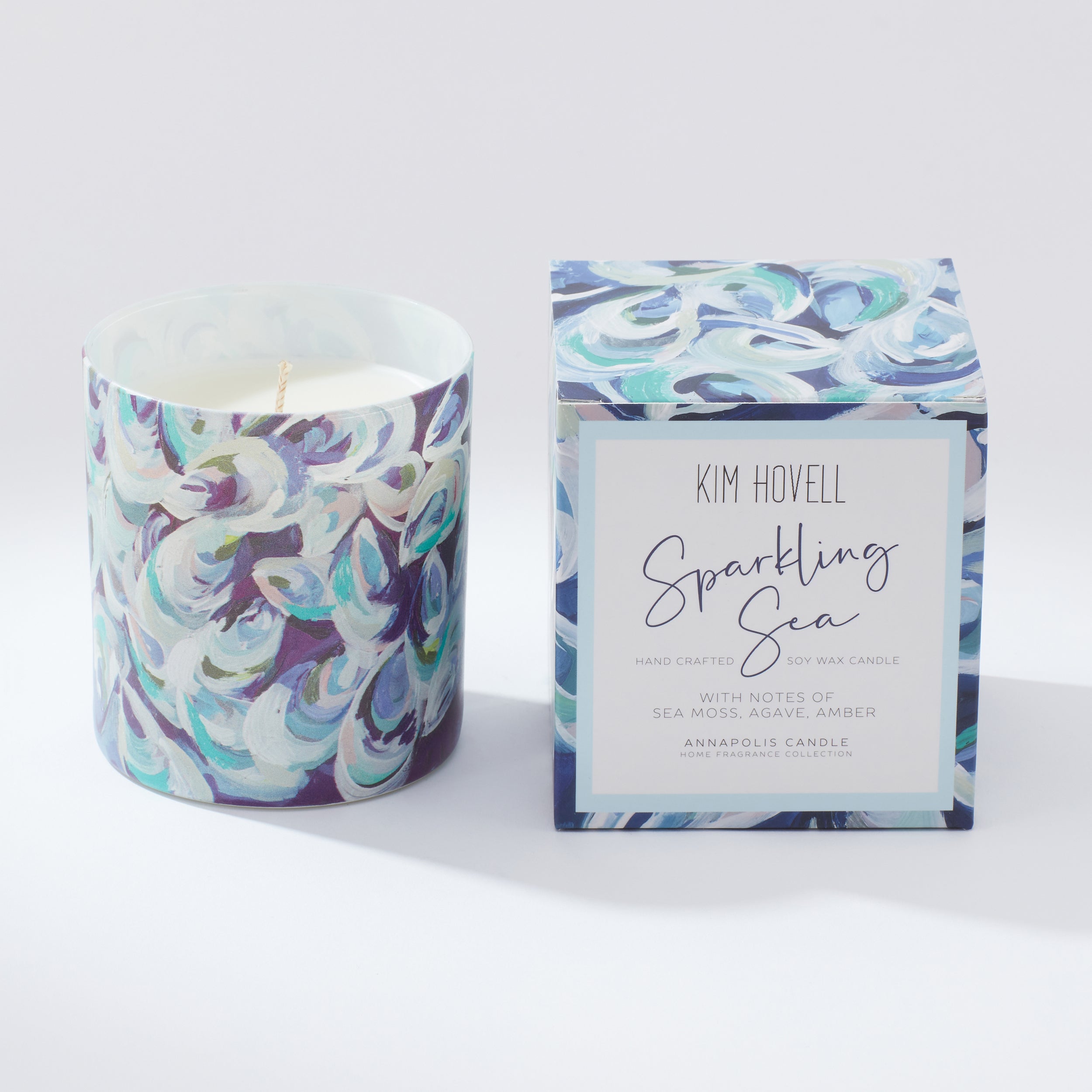 Painter Kim Hovell joined forces with the artisans at Annapolis Candle to create a union of fragrance and art. The collection is inspired by the colors and textures of the waterways and beaches of her native Maryland and is designed to bring one just a little closer to the shore.