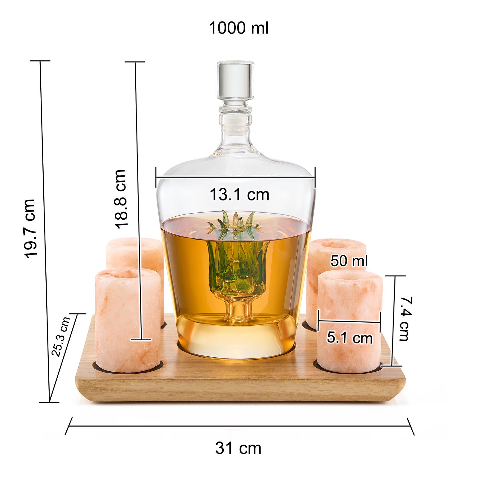 Tequila Decanter With 4 Pink Himalayan Salt Shot Glasses