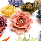 This is a short story for SEO purposes. Unique ceramic flowers glazed in a myriad of hues, each petal meticulously crafted with faux botanicals - a whimsical wall hanging reminiscent of an English garden. From delicate iris to vibrant peonies, this floral decor breathes life into any coastal or boho space, an artful backdrop for plant enthusiasts seeking nature-inspired accents.