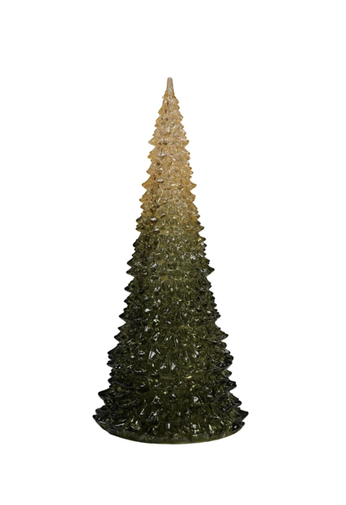 7" Round x 15-1/2"H Plastic Christmas Tree w/ LED Light, Green Ombre (Requires 3-AA Batteries)