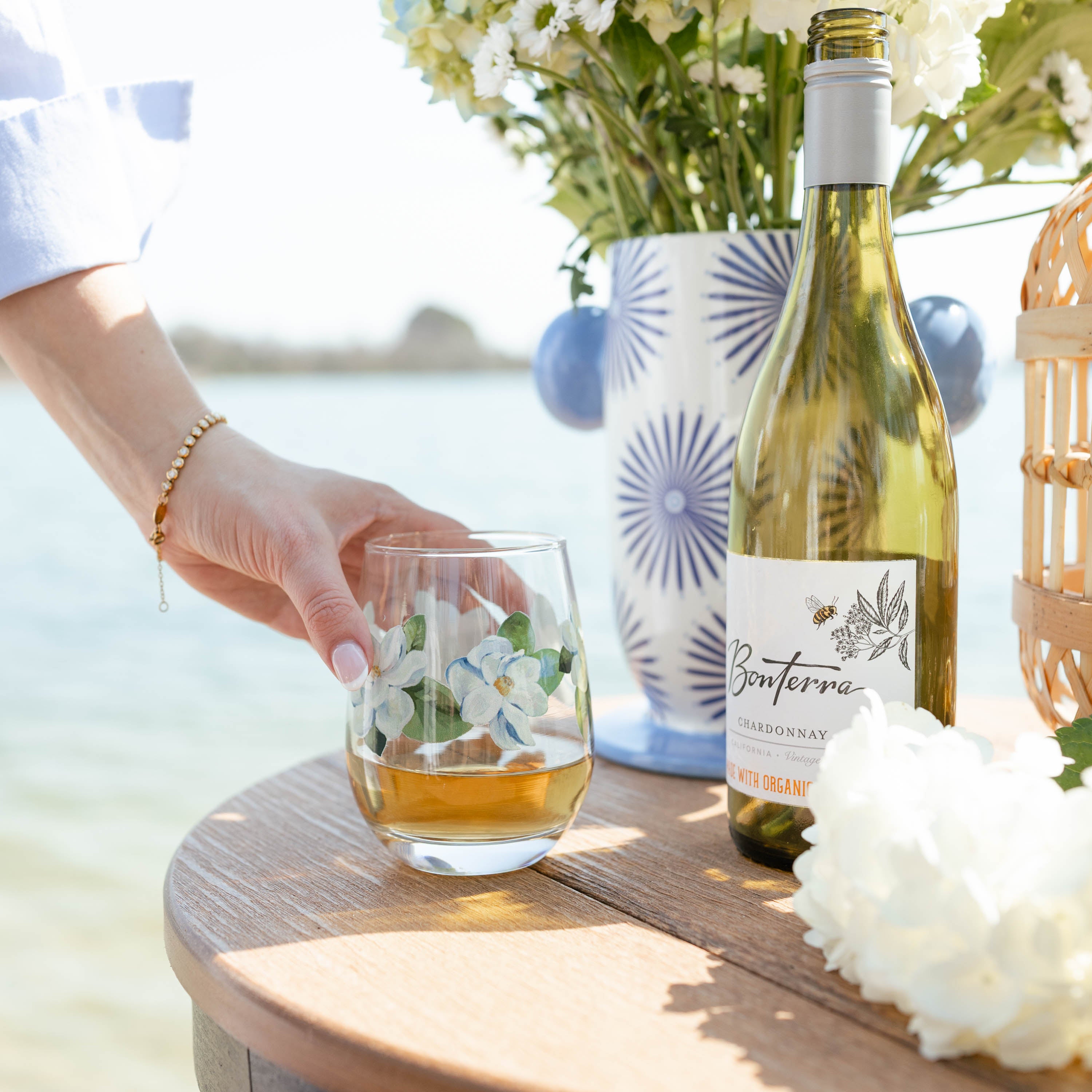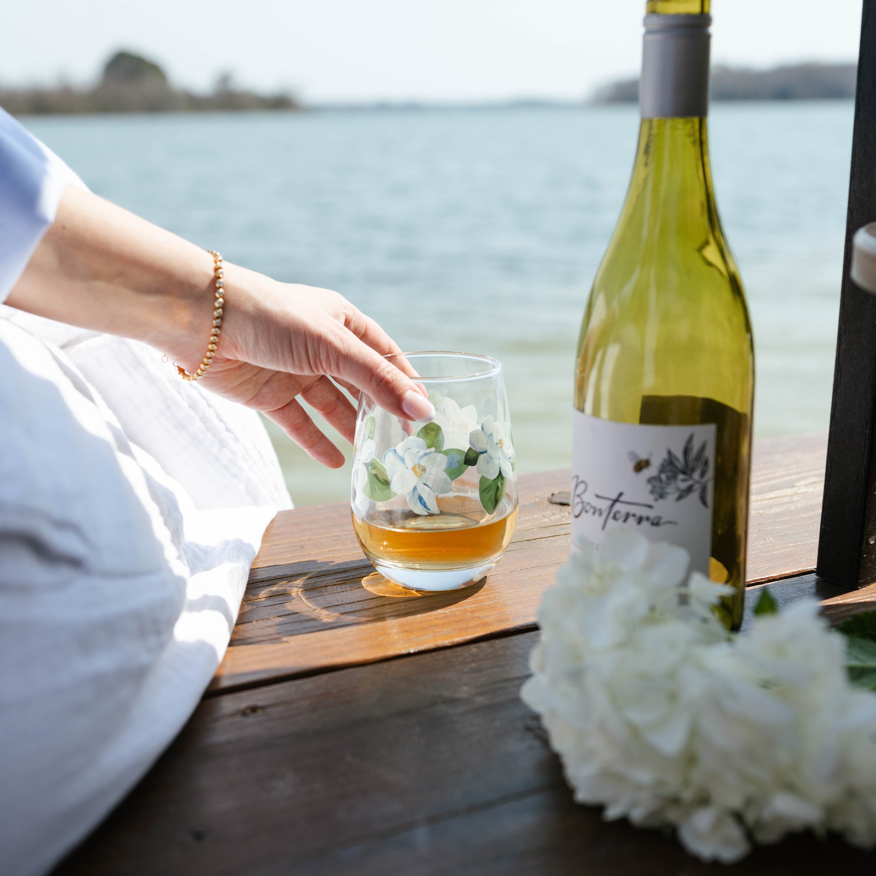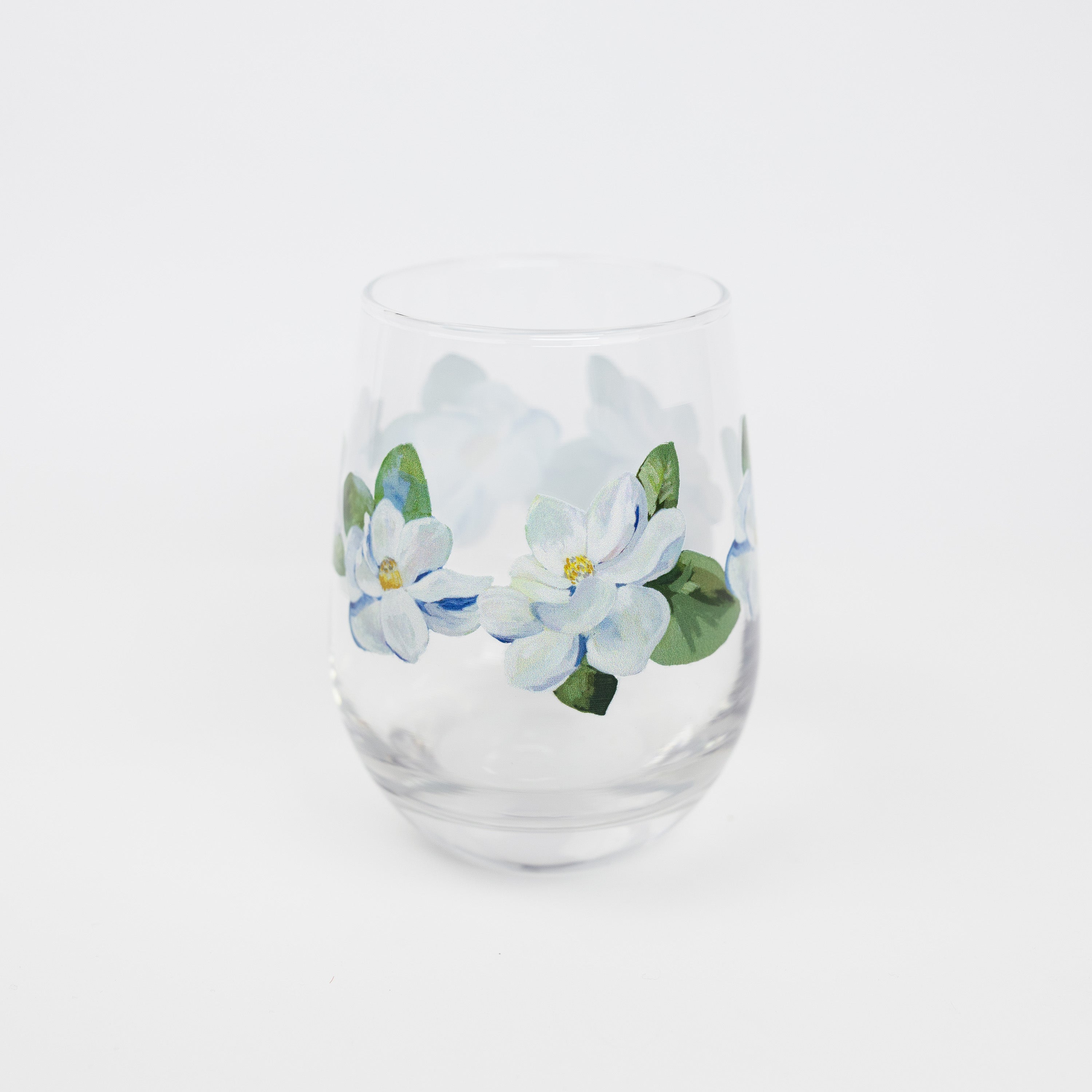 Introducing the NEW 15.25oz stemless wine glass featuring original artwork by Kim Hovell - Sweet Magnolia