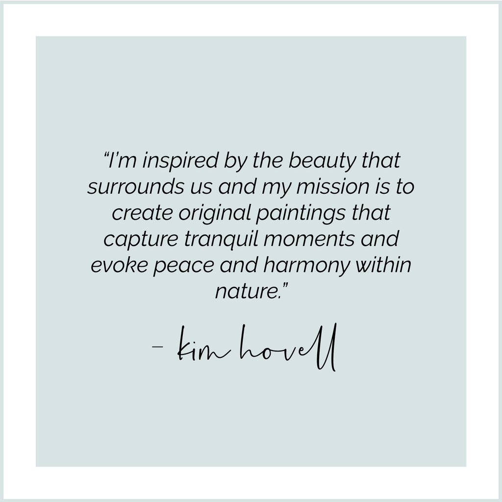 Born and raised in the charming waterfront town of Annapolis, Maryland, the Chesapeake Bay was Kim Hovell’s backyard. Kim’s lifelong love for art and design led her to a fine arts degree from Virginia Tech. Soon after returning to Annapolis, Kim’s artistic energy was channeled into painting the coastal lifestyle she knew and loved.