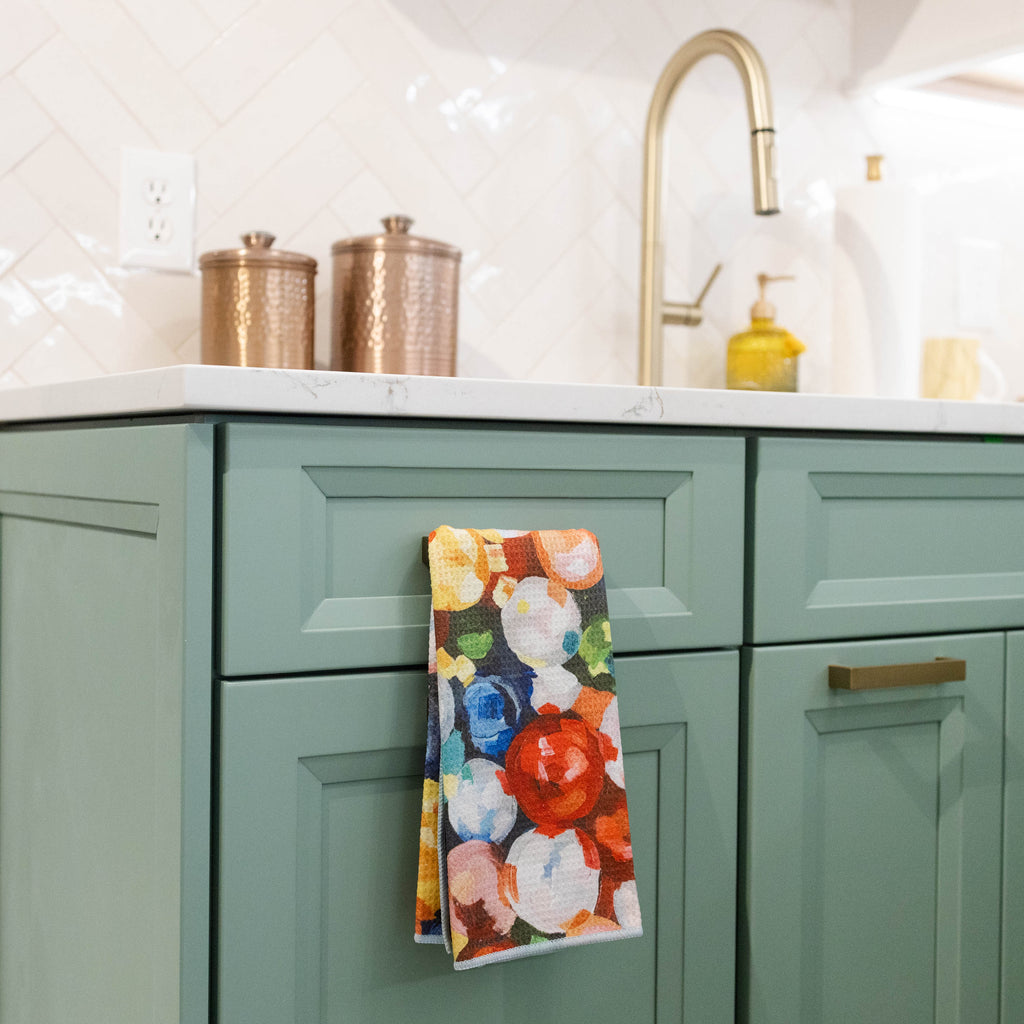 Add a pop of color to your kitchen decor with our highly absorbent dish towel featuring original artwork by Kim Hovell.